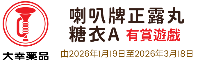 - 截止登記時間為2026年3月18日(香港時間23:59)。結果將於2026年4月1日(香港時間13:00) 於喇叭牌正露丸及糖衣A官方FACEBOOK及INSTAGRAM專頁內公佈。